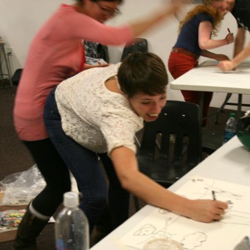 March 21st, 2013 – We were talking about art, work and segmented time. Imin’s tablet pens vs my sharpies. Her tablet pens are pretty fierce. Part of the ONE HOUR COLLABORATIVE COMBATIVE COFFEE (or tea) SESSION Project. I invited other artists to ‘work out’ ideas or problems we may both share in our practices. We … More Work vs. Segmented Time with Imin Yeh